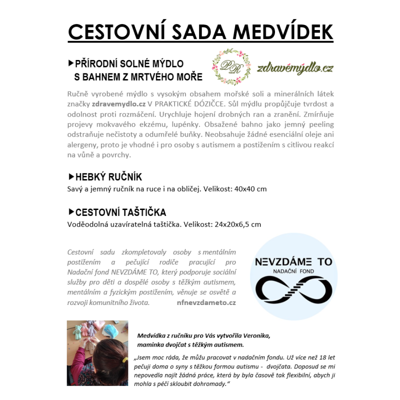 Balení: Celofánový sáček s etiketou Nadačního fondu Nevzdáme to
