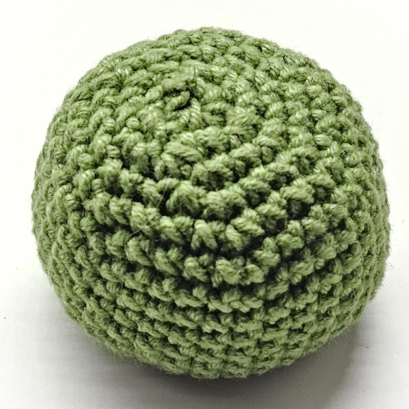 Průměr háčkovaného míčku je cca 5,5 cm, výška cca 3,5 cm.