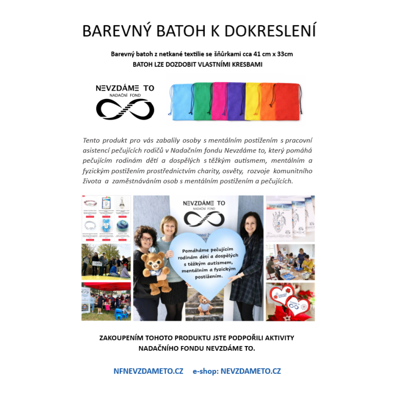 Balení: celofánový sáček s etiketou Nadačního fondu Nevzdáme to.