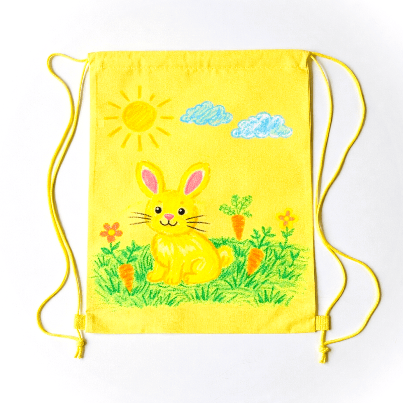 Jednobarevná taška 20cm x 20cm, kterou si dítě může pokreslit podle vlastní fantazie. Využít se dá jako módní doplněk, pro odnesení malých nákupů nebo jako dárková taštička.