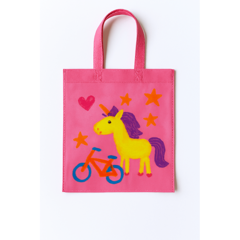 Jednobarevná taška 20cm x 20cm, kterou si dítě může pokreslit podle vlastní fantazie. Využít se dá jako módní doplněk, pro odnesení malých nákupů nebo jako dárková taštička.