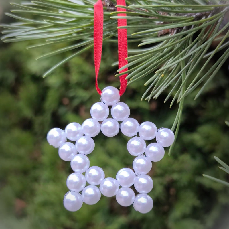 Vánoční ozdoby jsou ručně vyrobené z voskovaných perel Ø8 mm.